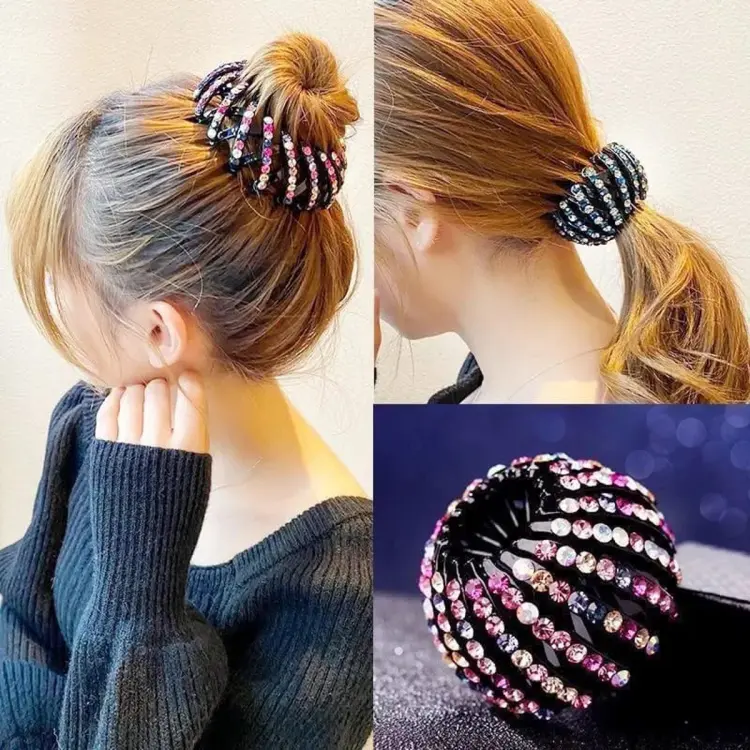 Crystal Bun Hair Claw Horsetail Buckle Hair Clip Bird Nest Expanding Hair Accessory.